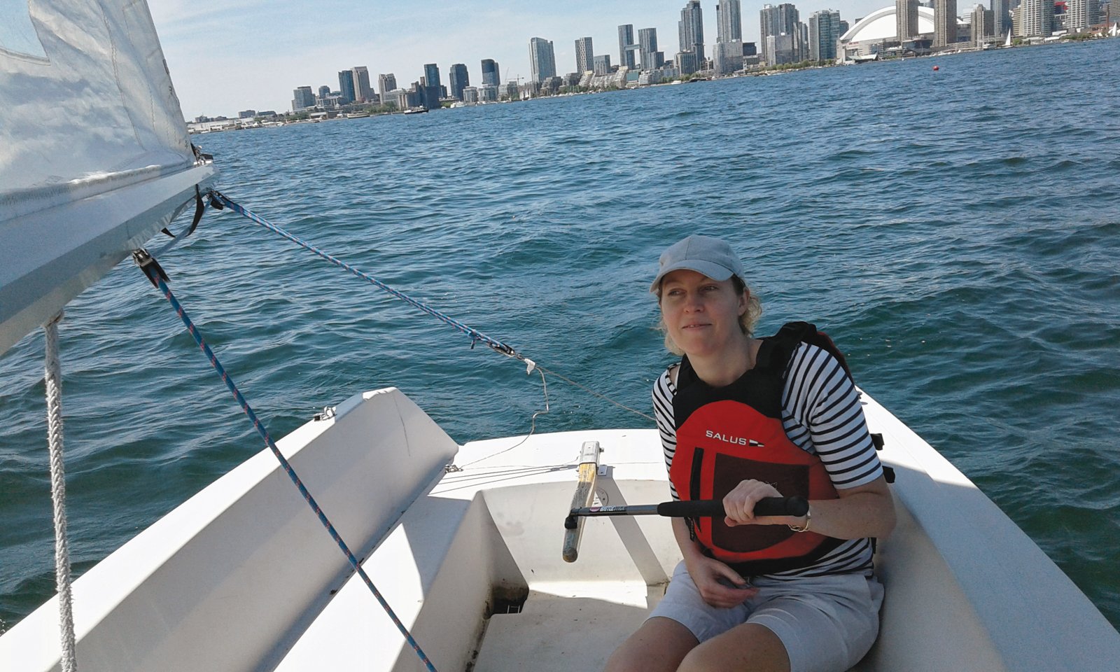 Carmel sailing in Toronto Harbour on Lake Ontario. ‹ Previous Carmel & John on the summer patio with mother-in-law Julianna Wallis Next › Carmel at Two Sisters Vineyard, Niagara, Ontario. Carmel sailing in Toronto Harbour on Lake Ontario.
