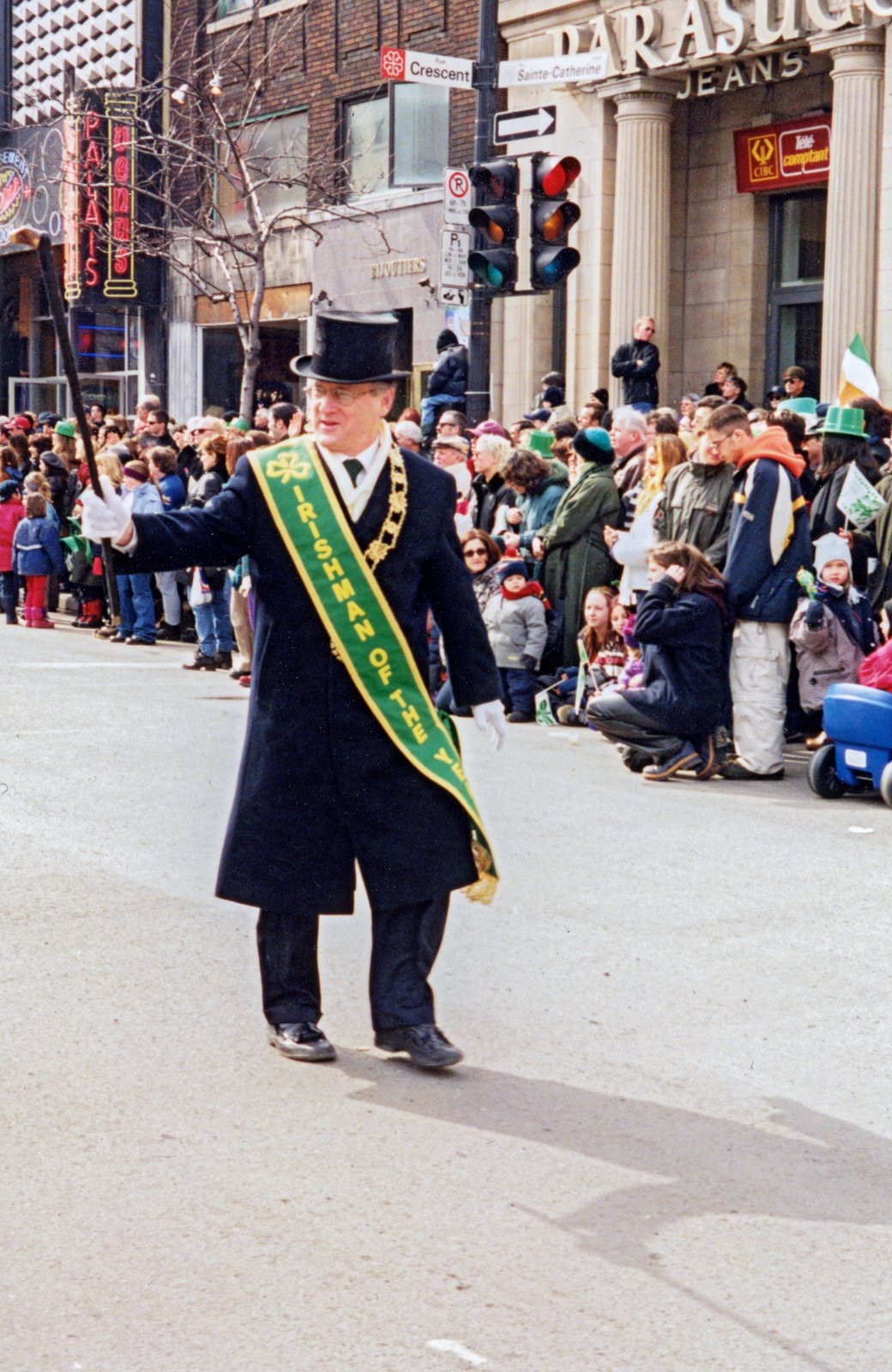 Montreal’s 2001 Irishman of the Year, Peter Shea, marching in the Montreal St. Patrick’s Parade in March 2001.